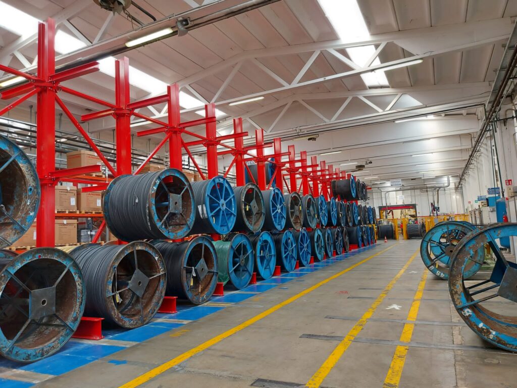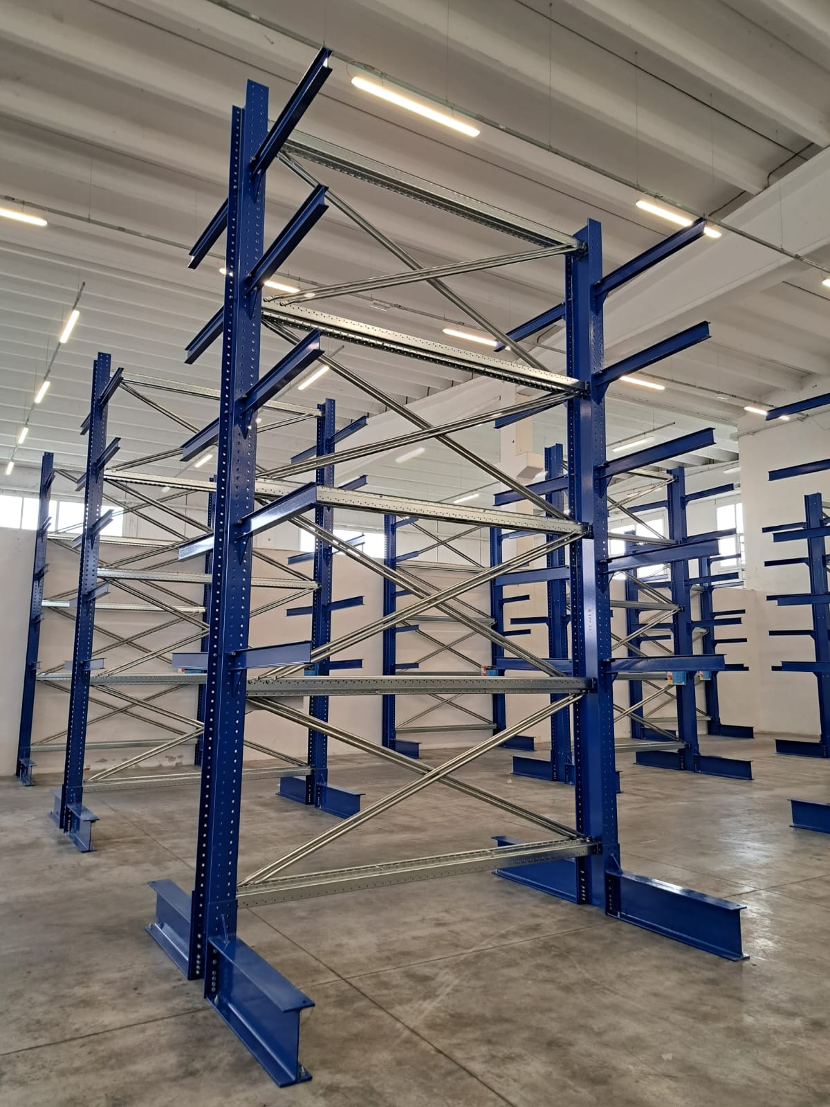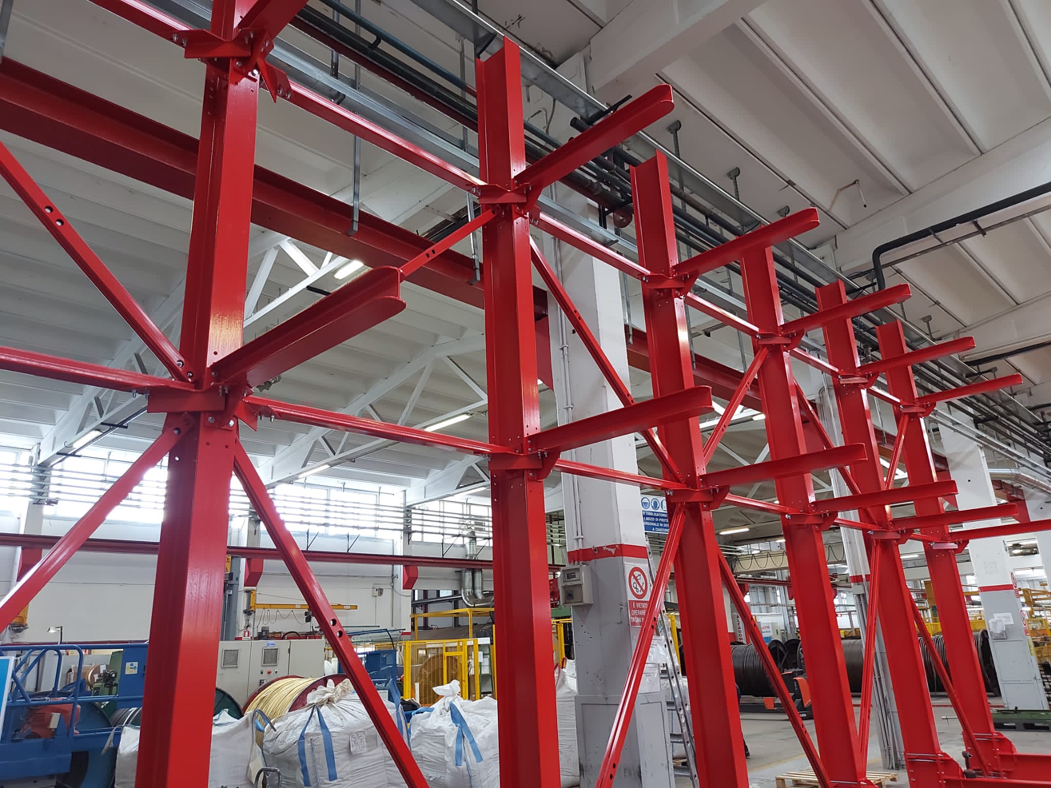 La particolare costruzione di questa linea di scaffali industriali per carichi lunghi pesanti ne fa una struttura autoportante che non necessita di ancoraggi a muro o a soffitto.