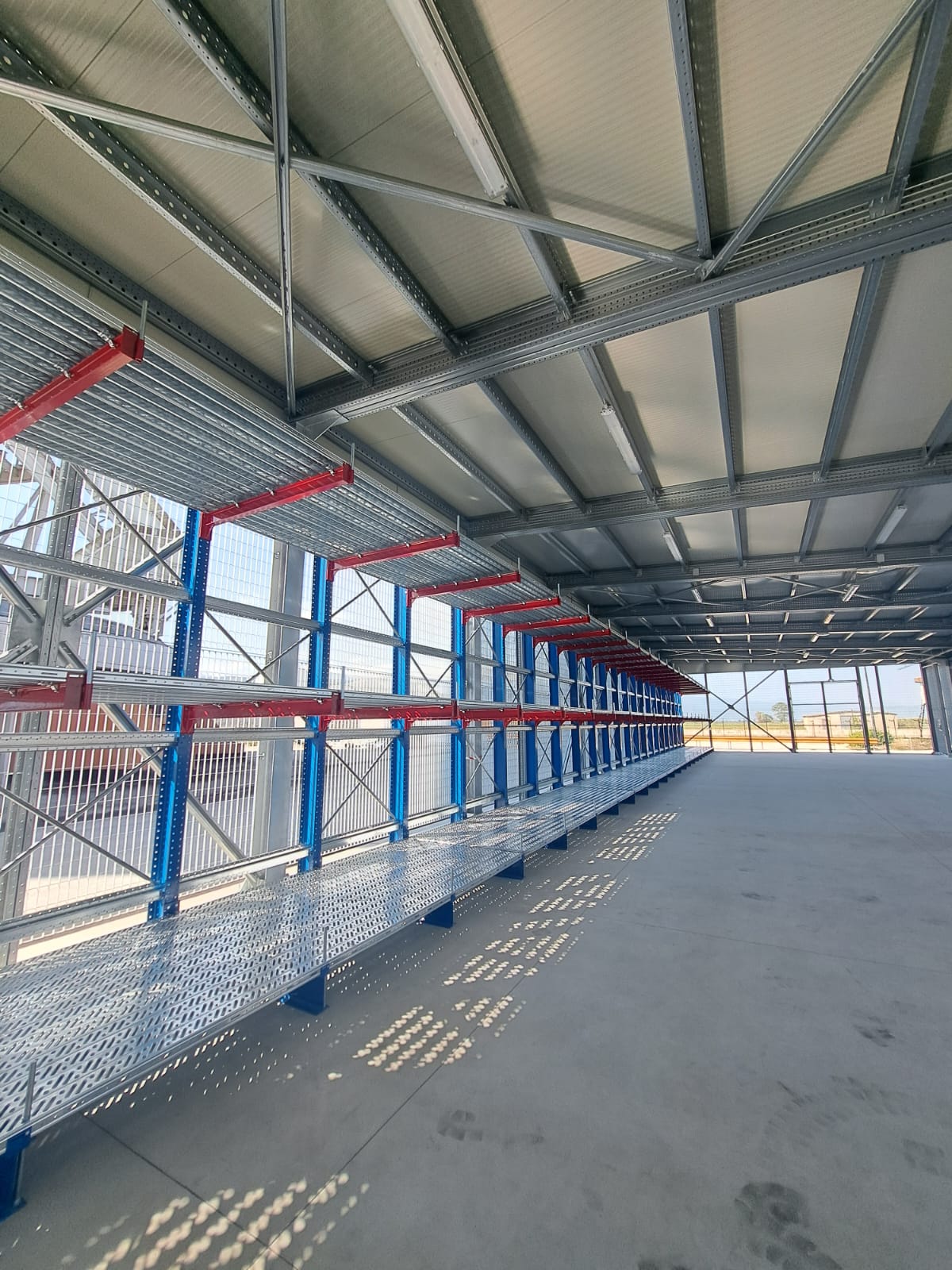 La scaffalatura cantilever Unicant è realizzata nei colori standard Rosso RAL 3000 per gli elementi strutturali principali e giallo RAL 1004 per le braccia a sbalzo, garantendo una visibilità ottimale della struttura; il rivestimento in zinco è eseguito secondo la procedura Sendzimir.